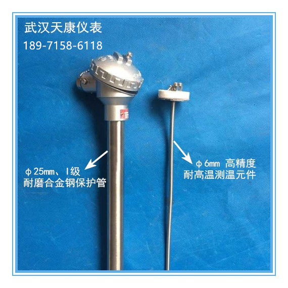4、高溫合金耐磨2:采用特種耐熱和耐磨合金材料作為測溫外保護管,內裝鎧裝芯體,既具有較高的對顆粒沖刷的耐蝕性能,是冶金行業(yè)運用于高溫、耐磨環(huán)境中十分理想的溫度傳感器