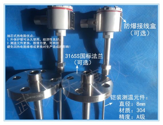 產(chǎn)品型號(hào):TKWZPK-441T 分度號(hào):pt100 (可選)精度等級(jí):A級(jí) 產(chǎn)品規(guī)格:長(zhǎng)度可定制 保護(hù)管材質(zhì):316SS 保護(hù)管直徑:27/22mm(可定做) 連接方式:法蘭、螺紋(可定做) 產(chǎn)品廠(chǎng)家:武漢天康儀表有限公司 咨詢(xún)熱線(xiàn):189-7158-6118