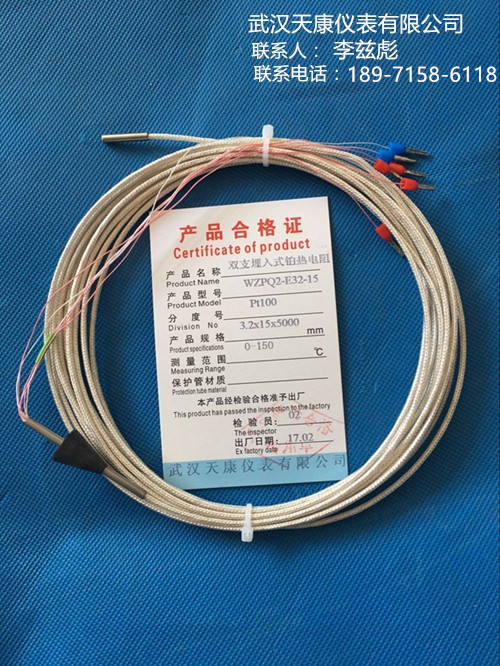 天康雙支埋入式鉑熱電阻WZPQ2-E32-15廠家直銷,ISO9001認證售后保障