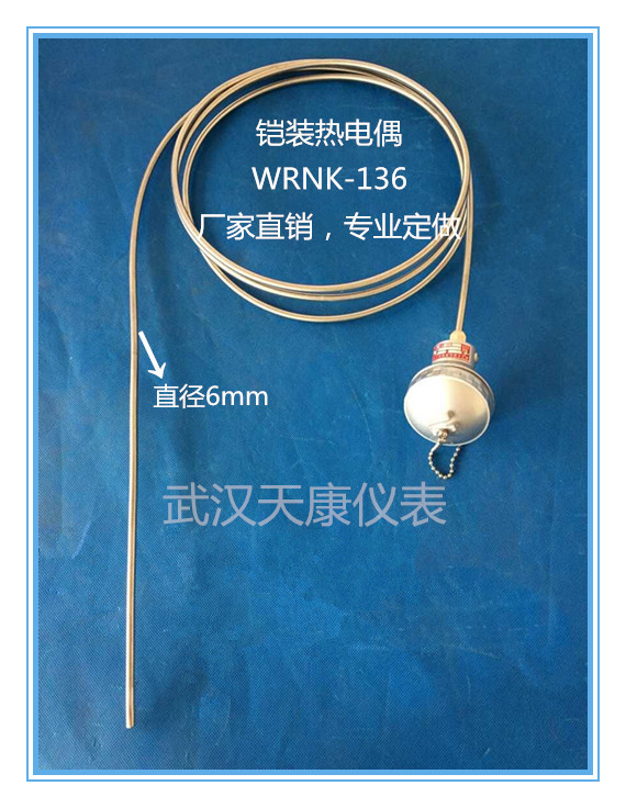 型號:WRNK-136 分度號:K (可選) 探頭長度:3200mm(可選) 探頭直徑:6mm (可選) )測溫范圍:0-1300℃ 接受定制,詳情可咨詢:189-7158-6118