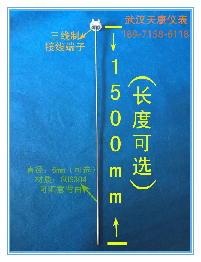 產(chǎn)品名稱:鎧裝熱電阻內(nèi)芯 產(chǎn)品型號:WZPK-106 廠家:武漢天康儀表有限公司 規(guī)格:L=1500mm 保護管直徑:6MM 保護管材質(zhì):304不銹鋼 連接螺紋:* 分度號:Pt100 (可以根據(jù)實際需要定做)